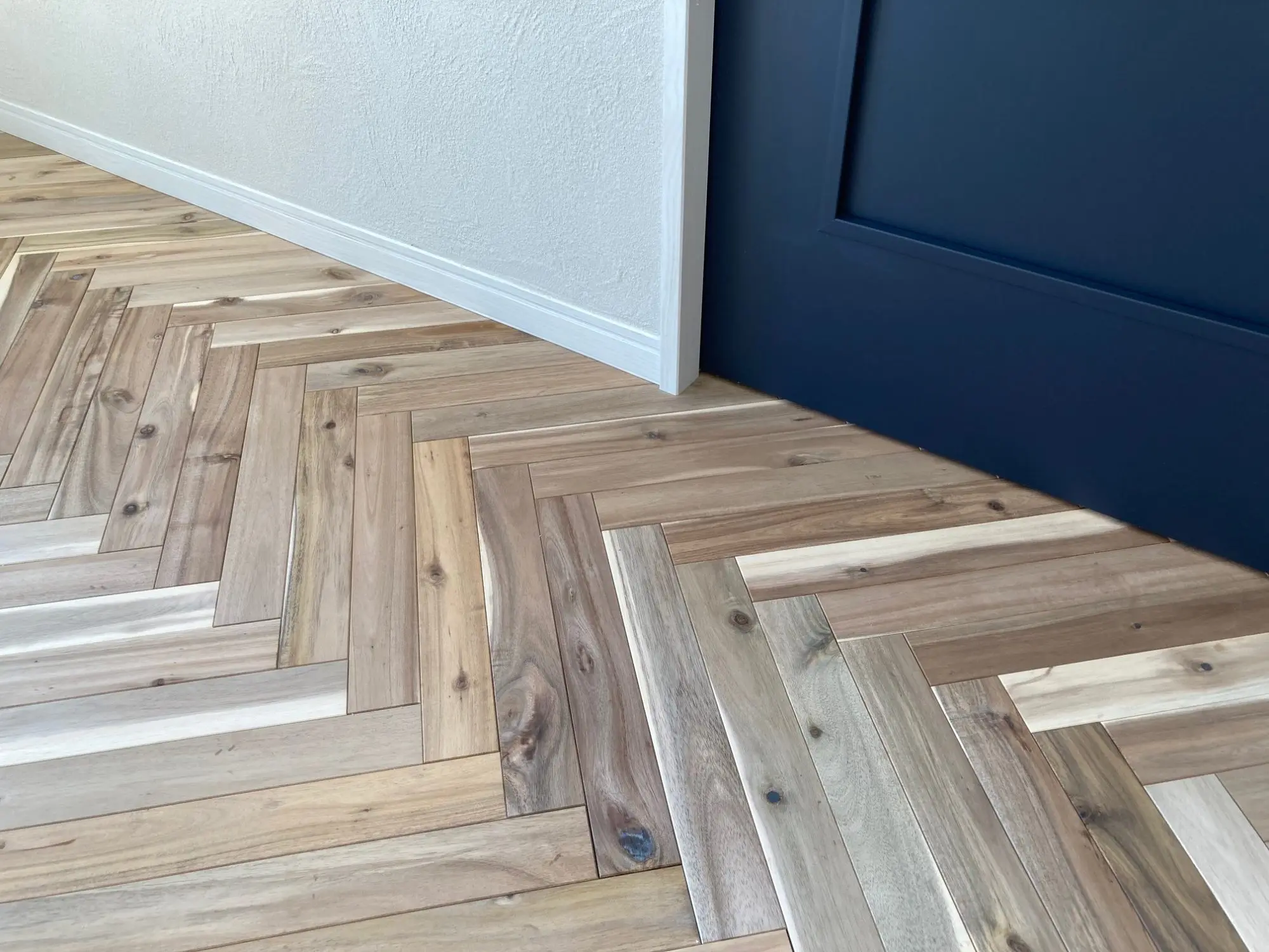空間の印象を決める、ヘリンボーンの無垢フローリング