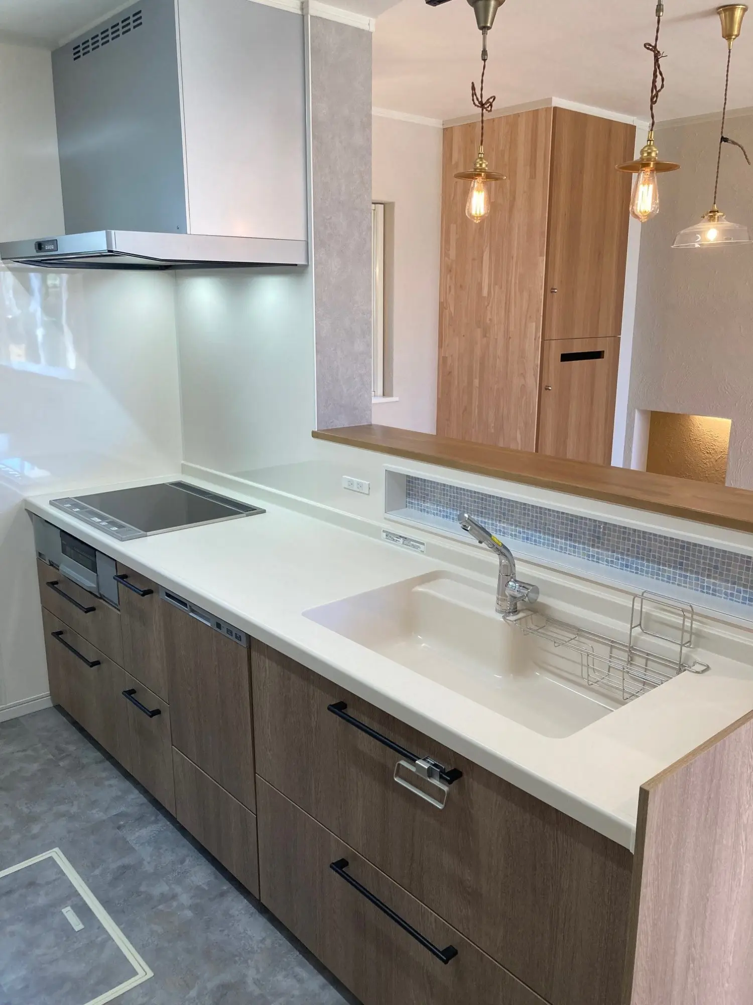 収納扉や設備の色も空間と合わせて統一感を大切にしています。