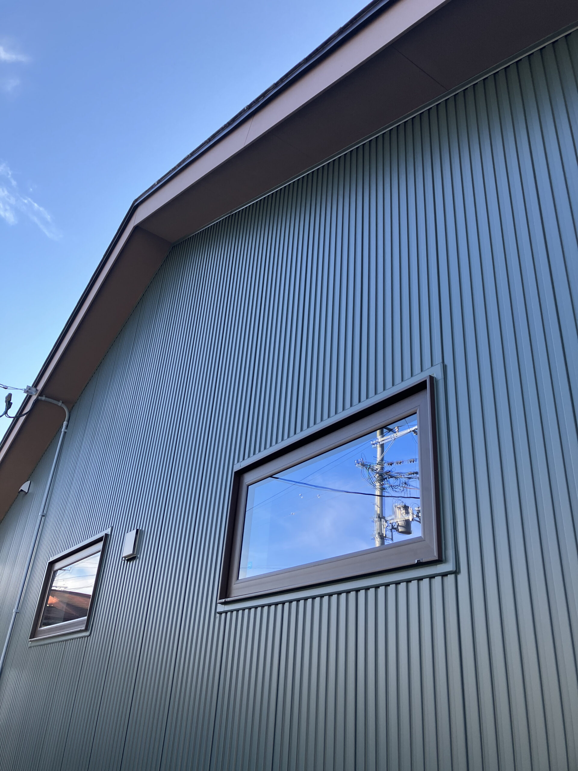 外観には伊藤建設で人気のモスグリーンのガルバリウム鋼板を採用し、印象的な仕上がりに。