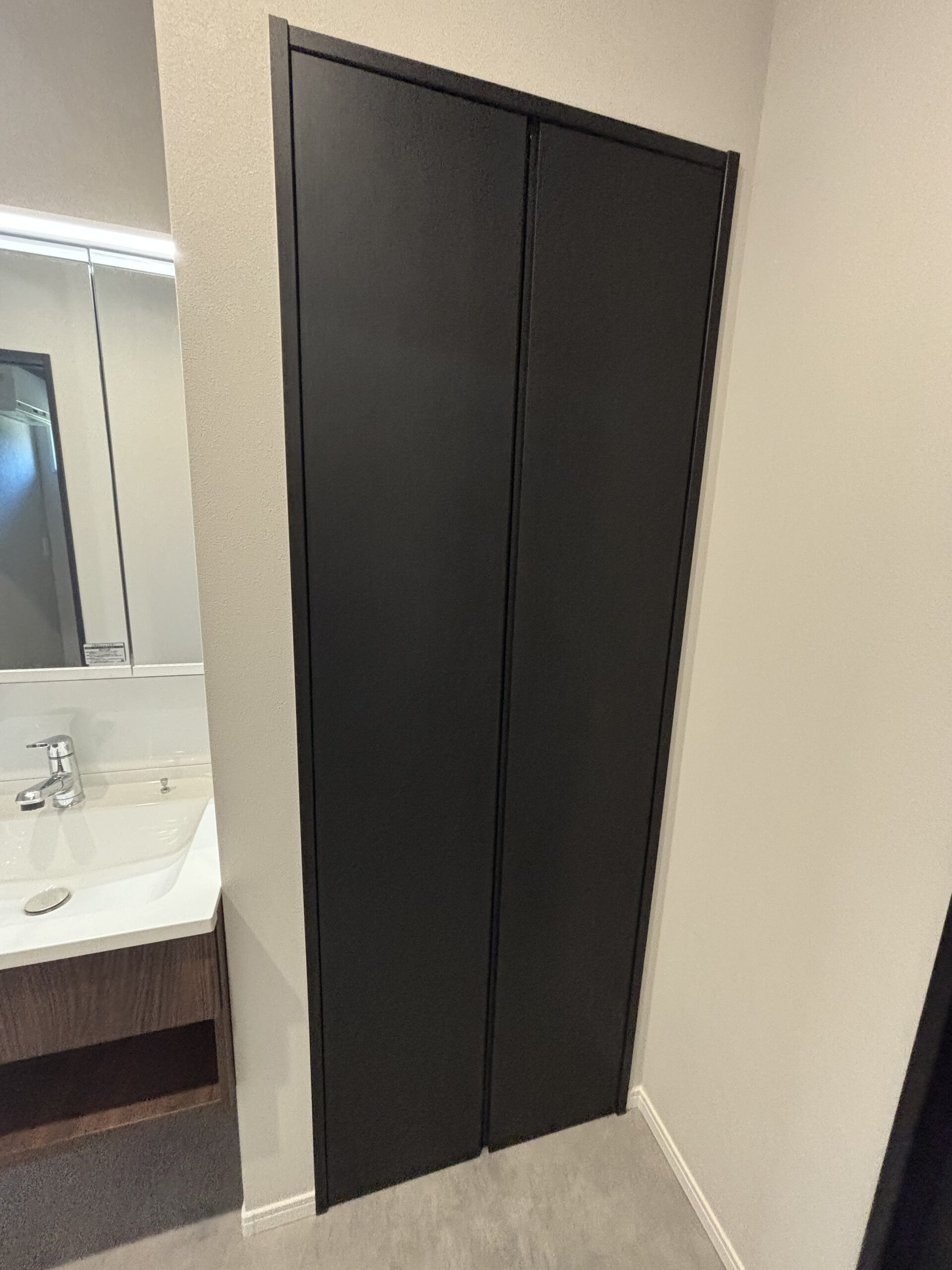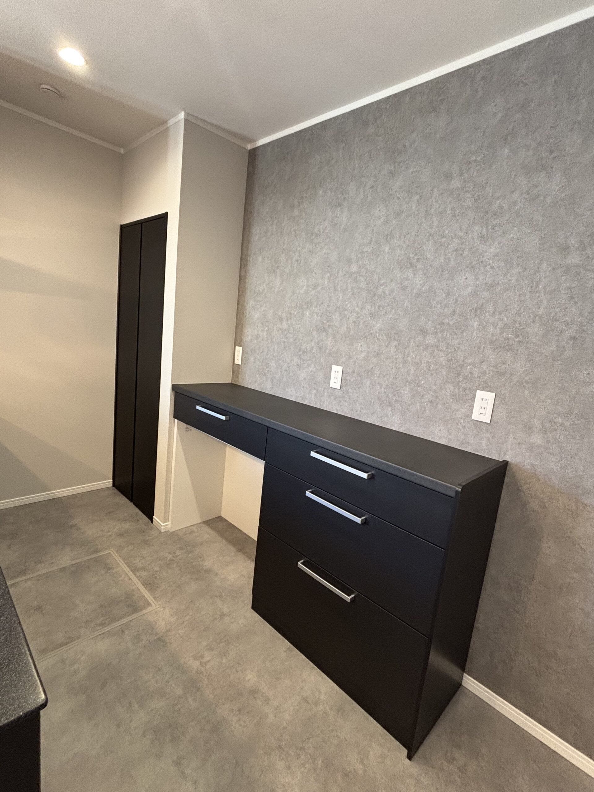 ご家族の一員である愛犬のスペースも確保しつつ、限られた空間を有効活用した収納設計。